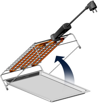 - Stainless steel tray. - Simple grill. - Detachable and easy to clean. - Dimension: 34.8 x 29.5 x 8.7cm.