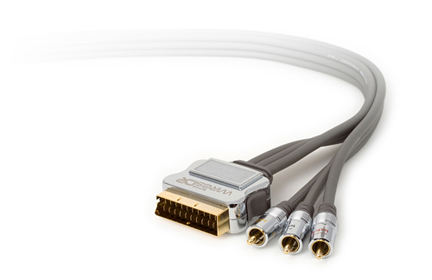 Lead for the transmission of the video and audio signal (SCART) to a VCR (record only) or TV (RCA/Phono). Features a high density shielding for the most reliable rejection of RF and EM interference. Enhanced solid centre conductors maximize low frequency response and signal strength, while enhancing ultra-wide bandwidth capabilities.