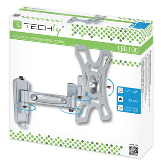 Techly 17-37" Wall Bracket for LED LCD TV Tilt 3 Joints Silver" ICA-LCD 2602. Maximum weight capacity: 25 kg, Minimum screen size compatibility: 43.2 cm (17"), Maximum screen size compatibility: 94 cm (37"). Tilt angle: -15 - 15°, Turn angle: 180°, Rotation: 360°. Colour of product: Silver. Width: 61 mm, Height: 146 mm, Weight: 2.09 kg