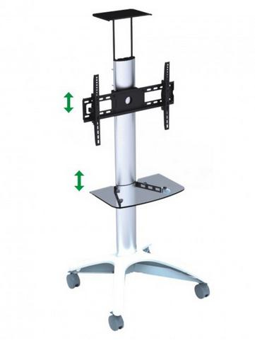 Techly 32-60" Floor Stand for LCD / LED / Plasma" ICA-TR5. Colour of product: Grey, Silver, Type: Fixed flat panel floor stand. Minimum screen size compatibility: 81.3 cm (32"), Maximum screen size compatibility: 152.4 cm (60"), Maximum weight capacity: 40 kg. Tilt angle: -15 - 15°, Number of wheels: 4 wheel(s). Height: 1590 mm, Height (max): 190 cm