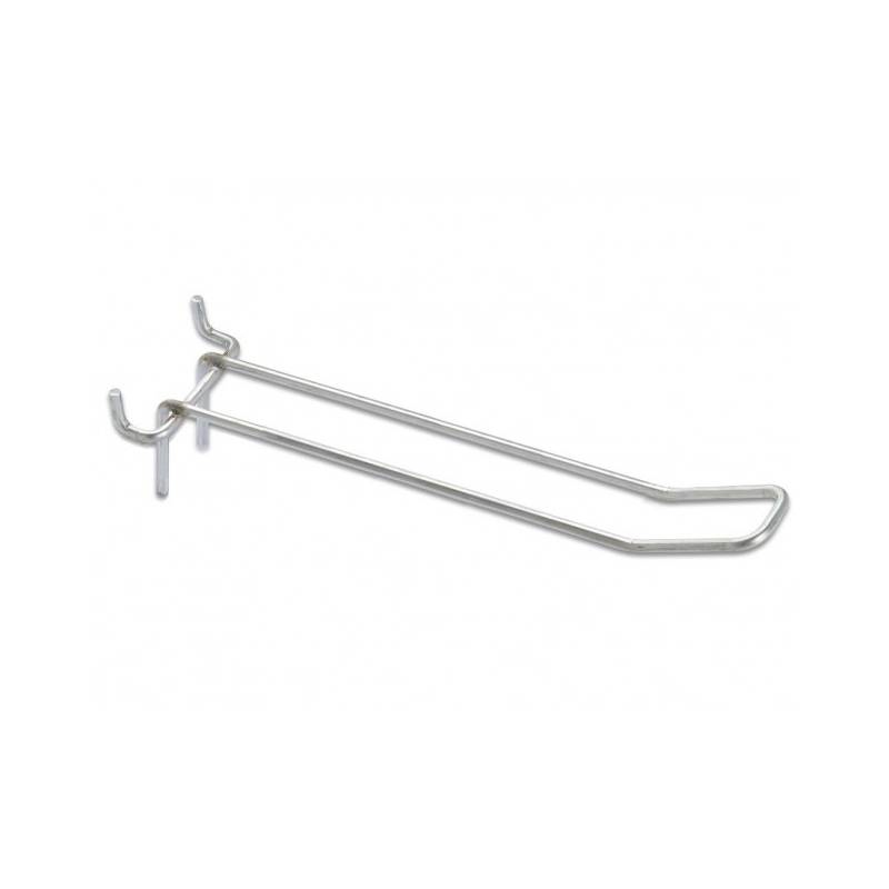 - Additional hook for exhibitors - Featuring the dual design support - Material: pre-galvanized wire redrawn - Suitable for perforated panels with holes at 50 mm and 3.8 mm diameter wire