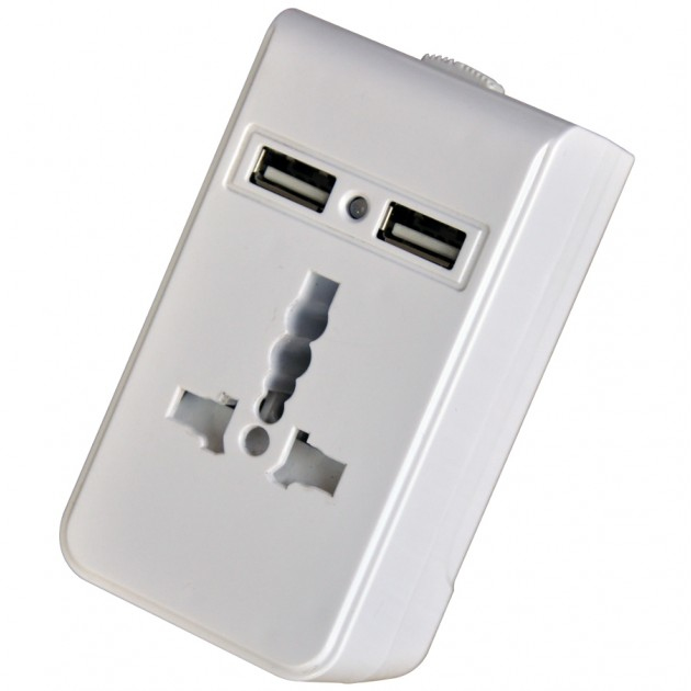 Techly Universal Travel Adapter 1A for Electrical Sockets with 2 USB IPW-ADAPTER3. Width: 50 mm, Depth: 40 mm, Height: 90 mm