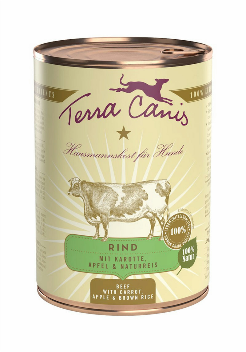 Our wet food meals are made in a food processing facility, an Upper Bavarian traditional butcher's. Only food-grade ingredients are used. In addition to the fresh muscle meat and "good offal" such as heart and liver, there are over 20 different types of vegetables, fruits, and herbs in our meals. Complete food for dogs.