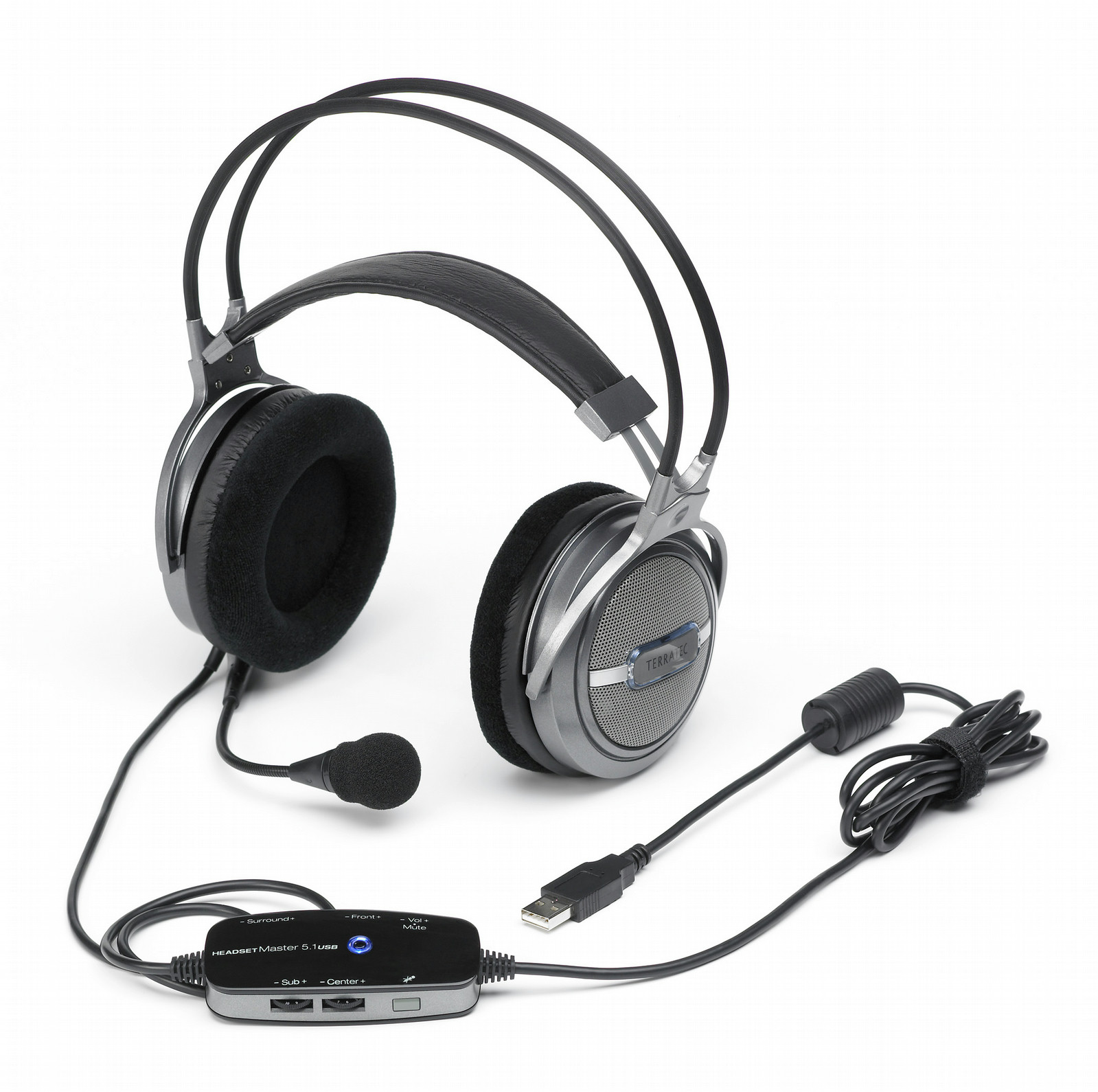 The Headset Master 5.1 USB is a true 5.1 surround-sound headset with 6 speakers, microphone and convenient cable remote. Movies and computer games are accompanied by perfect sound quality achieved using the software equalizer and the separate volume controls on the cable remote for each channel. Every equalizer and the separate volume controls for each channel sound can be set effortlessly—a must for thrilling entertainment. Because if you hear your opponent first, the advantage is obviously yours. Thanks to the integrated sound system, no