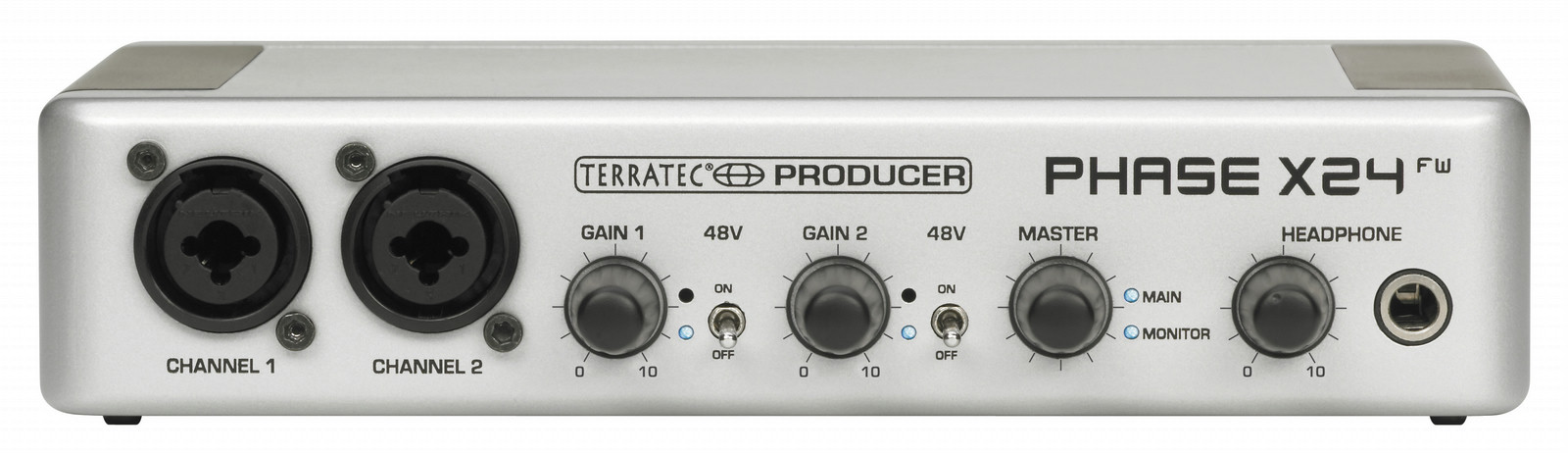 The professional version of the handy PHASE 24 FW shines with an abundance of connection options and technology, without losing any of the familiar stylish design. The two combo jacks on the front of the external housing can accept instruments with 1/4" (6.3mm) stereo jacks and microphones (XLR), and are individually adjustable using two gain controllers with status and clipping LEDs.