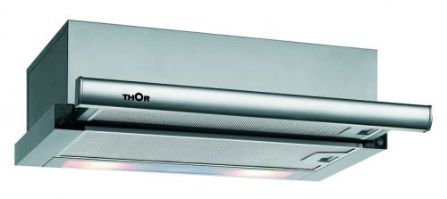 Thor TCT 62. Maximum extraction power: 332 m³/h, Type of extraction: Ducted/Recirculating, Noise level: 65 dB. Type: Built-under cooker hood, Colour of product: Stainless steel. Grease filter type: Metal. Width: 600 mm, Height: 184 mm, Depth: 413 mm