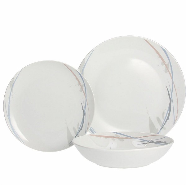 Tognana Porcellane ME070185436. Colour of product: Multicolour, Material: Porcelain. Dinner plate diameter: 27 cm, Soup plate diameter: 20.5 cm, Dessert plate diameter: 21 cm. Number of products included: 18 pc(s). Pallet height: 102 cm, Quantity per pallet: 32 pc(s), Master carton width: 44.5 cm