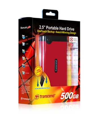 Transcend's StoreJet 25 mobile is compact and portable, with measurements of only 134 mm by 80.8 mm by 18.8 mm. Weighing in at just 206g, the StoreJet 25 mobile is easy for users to conveniently carry around. To protect against data loss or damage from accidental slips or falls, the StoreJet 25 mobile meets the U.S.military drop-test standards MIL-STD-810F 516.5 procedure IV (transit drop test) with advanced two-stage anti-shock technology, literally making it one of the safest places to keep your data.* In order to ensure maximum compatibility with most desktop and notebook computers, the StoreJet 25 mobile uses a high-speed USB 2.0 interface, which provides data transfer rates up to 480Mb per second while offering the convenience of plug and play.