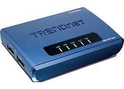 The 2-Port 10/100Mbps Multi-Function USB 2.0 Print Server (TE100-MP2U) is designed to transform virtually any stand-alone multi-function USB printer into a shared resource on your network. An intuitive utility application and a user-friendly configuration interface provide a seamless user experience. LED indicators, bidirectional support and e-mail notifications allow for easy management. With support for most operating systems, simply connect up to two devices to this product for instant multimedia and file sharing. This product offers a cost effective solution to the challenge of sharing multi-function printer, fax, scanner and storage devices.