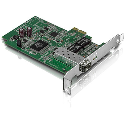 The SFP PCIe Adapter, model TEG-ECSFP, is a Gigabit fiber network adapter which is compatible with standard SFP modules and PCI Express slots. Full-Duplex technology generates data rates of up to 2 Gbps over a motherboard’s high-speed PCI Express Bus architecture. Jumbo Frame support further optimizes throughput performance.