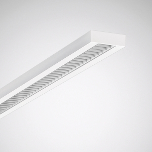 Luminaire body of sheet steel, powder-coated, Colour white (RAL 9016). Dimensions (L x W) 1193 mm x 160 mm, luminaire height 53 mm. Installation dimensions of end cap for end luminaire or single luminaire use is 11 mm per end cap. Please order end caps for individual luminaires or continuous lines separately. Rectangular design with 40 mm wide rim. Luminaire body with integral coupling profiles for precise alignment of continuous lines with non-interrupted louvres. Permissible ambient temperature (ta): -20 °C - +25 °C.