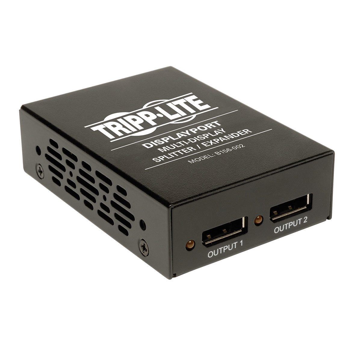 Get everyone’s attention by broadcasting awesome messages in ultra-high definition video! With Tripp Lite's B156-002 2-Port Multi-Display Video Splitter/Expander, you can split or expand a single DisplayPort signal into two separate signals and display them on two DisplayPort monitors using standard DisplayPort cables (Tripp Lite P580-Series or P583-Series). You can display the same image on each monitor, extend the desktop across them, or display in video wall mode where monitors are combined to display as one, enlarged monitor. The B156-002 supports 4Kx2K Ultra-High Definition (UHD) video resolutions up to 3840x2160 (60Hz), 48-bit Deep Color (16 bits per channel), and is compatible with HDCP, EDID and DDC. It is compliant with DisplayPort v1.2. It comes with an external power supply and brackets for wall-, rack- or pole-mounting. All mounting hardware is included.