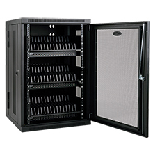 The CS48USB 48-Device USB Charging Station Cabinet provides fast charging, convenient syncing, secure storage and cord management for up to 48 iPad, Android, Surface and Kindle tablets. It also charges mobile phones and other USB devices. It’s ideal for education, office, commercial, retail, industrial and healthcare environments.48 USB ports deliver the fastest charging supported by each device, up to 2.4A per port. The charging station also supports wired and wireless syncing, including syncing while charging. The steel cabinet provides comprehensive device protection. It has a powder-coated finish and locks with the included keys to prevent device theft, damage or tampering. Flow-through ventilation prevents overheating, the coated shelves prevent scratches and scuffs, and the charging station also provides clutter-free organization of devices and cabling. The charging station is easy to configure. It ships fully assembled and supports mounting to a wall, desk, table, counter or floor. The front door opens 180 degrees for clear access, and removable dividers accommodate thicker devices. You can also convert the charging station to a mobile cart with Tripp Lite’s CSHANDLEKIT accessory.