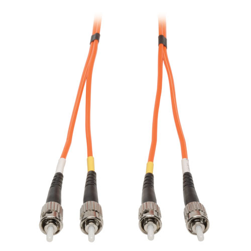 Tripp Lite's 10-meter multimode duplex fiber optic ST/ST patch cable is manufactured from 62.5/125 zipcord fiber. The cable has ST connectors on each end, a PVC jacket and is FDDI and OFNR rated. Duplex multimode fiber is most commonly used in LAN applications.