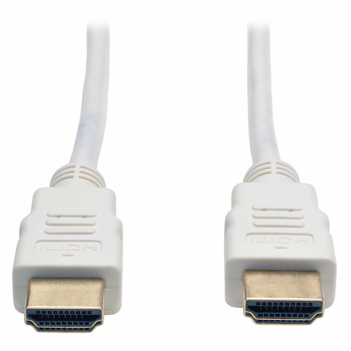Tripp Lite's 3-ft. White High Speed HDMI (High-Definition Multimedia Interface) Gold Cable allows interconnection between digital display devices, such as DTV's (Digital Television), Plasma displays, LCD TV's and projectors, to Digital source devices, such as Digital Set-Top boxes, Blu-Ray players and AV receivers. Supports iPad2 Video Mirroring when used with Apple Digital AV Adapter. HDMI assures that the best audio/video signal is always sent from the source (HDTV signal, Blu-Ray Player) to the display (Projection Television, LCD, Plasma, etc.). It does this by allowing uncompressed video and multi-channel audio data to be input to the display device through one single cable. An HDMI connection allows input at high rates of speed, up to 10.2 Gbps.