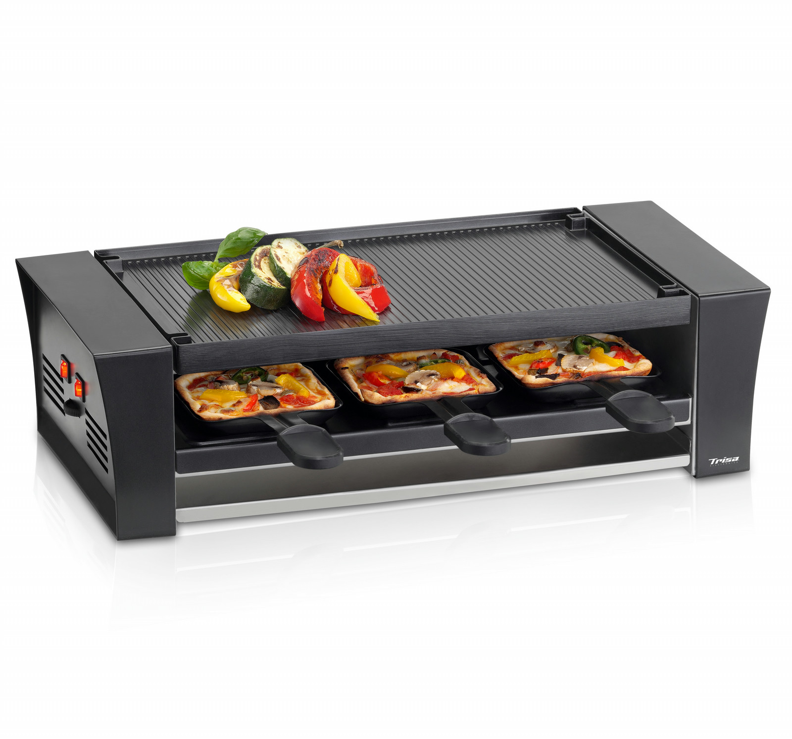 - Upper heat that can be continuously regulated for cosy raclette fun