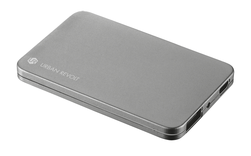 Ultra-thin portable charger at creditcard size with built-in 1800 mAh battery to charge your phone anywhere