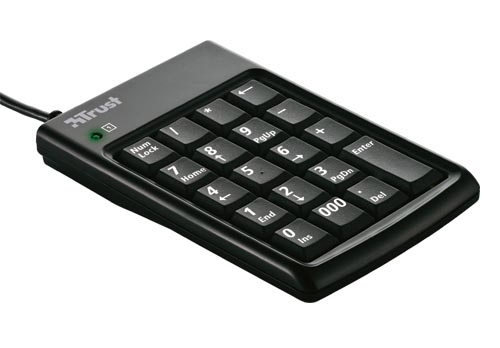 - Numeric key pad with integrated 2 port USB hub. - For effective numeric use on notebook. - Also handy for left hand numeric use. - With backspace and extra numeric triple zero key.
