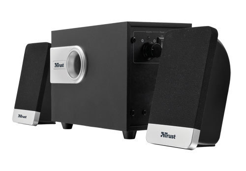 - Extra compacte 2.1-luidsprekerset inclusief houten subwoofer met een totaal RMS-uitgangsvermogen van 10 Watt (20 Watt piekvermogen)