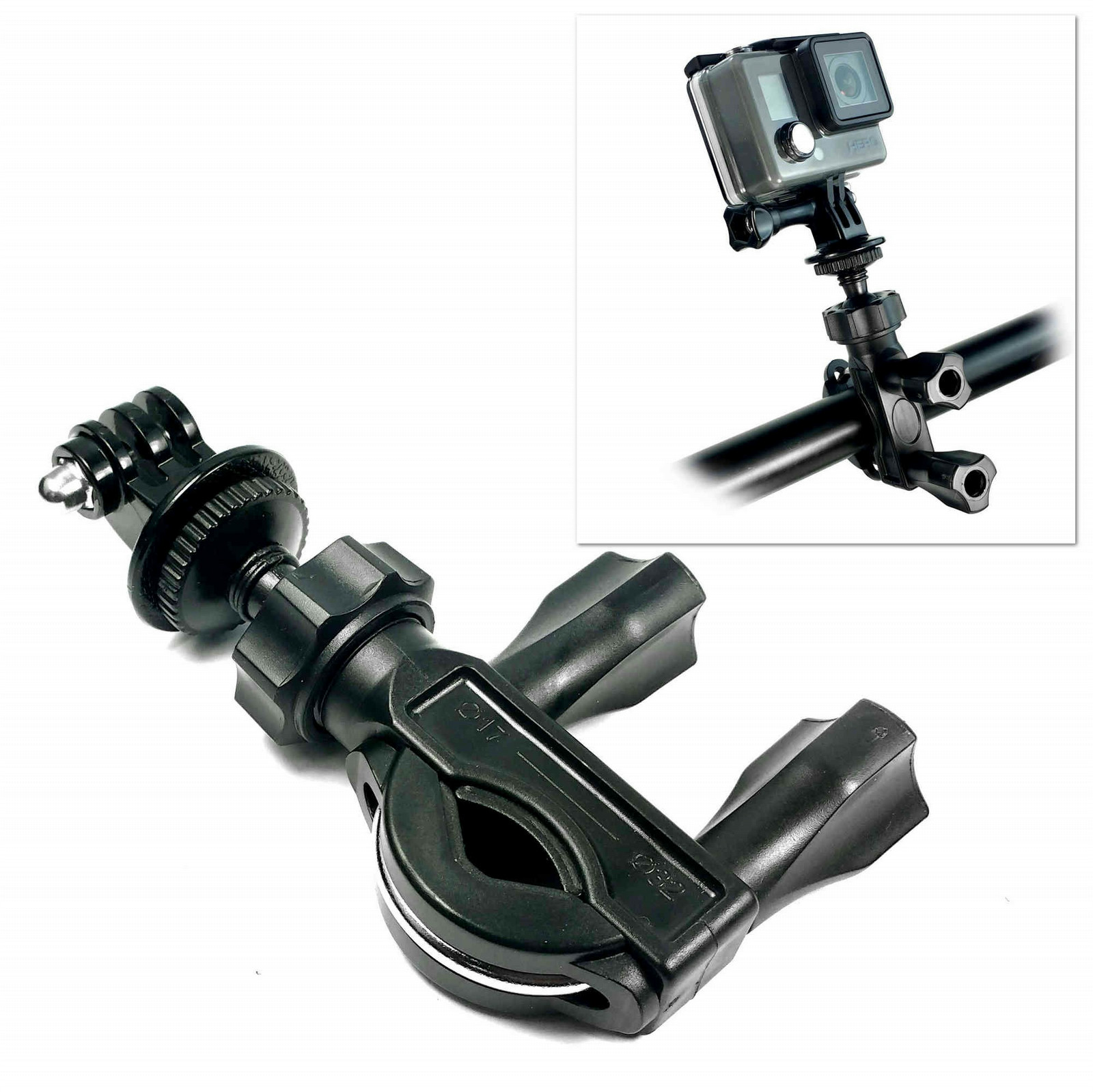 Handlebar / seatpost mount, take your Hero 4 / 3+ / 3 / 2 / 1 along for the ride.