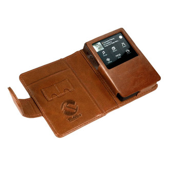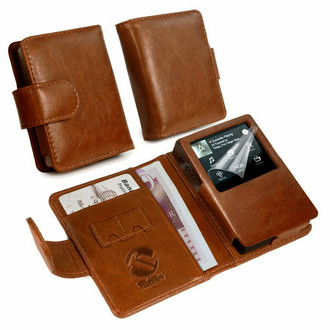 Personalised Vintage genuine leather wallet case cover & Screen Protector for Astell & Kern AK120- Brown