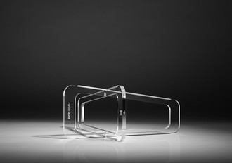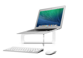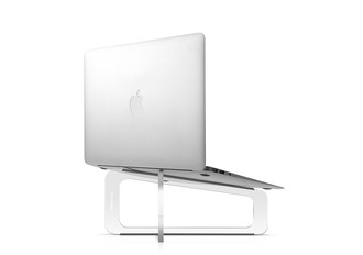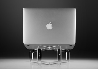 GhostStand is a transparent, ultra-modern platform– and a brilliant work of art– that elevates MacBook to a more comfortable viewing height. Pair your MacBook with a full-size keyboard and mouse, then set it on GhostStand to enjoy desktop style comfort at home or work. While GhostStand makes it look like your MacBook is floating in midair, two sets of soft silicone rails keep your Mac safely grounded to this affordable lucite stand.
