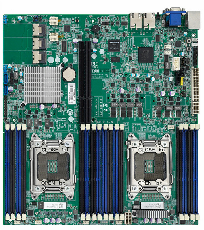 2xLGA2011, 8.0 GT/s, Intel C602, 16xDIMM, 1xPCI-E x16, 1xPCI-E x4, 3xLAN, 2xMiniSAS, 2xSATAIII, 1xVGA, 6xUSB2.0, 1xCOM, EATX