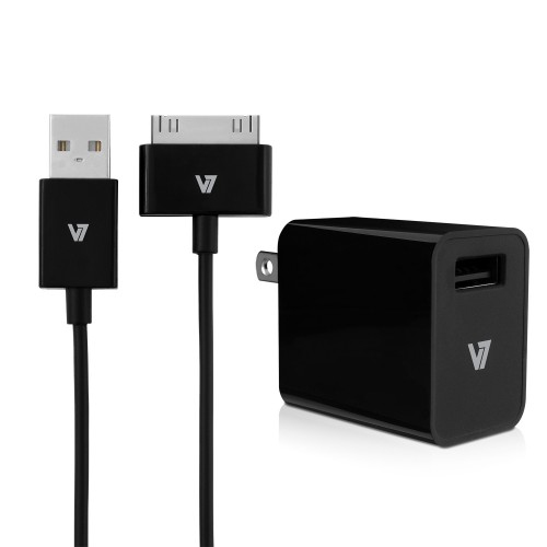 The V7 10.5W Wall Charger with 30-pin cable is perfect to use as a spare charger or replacement at home, or the office. The 10.5W charger is designed to charge Apple® devices with a 30-pin connector. It has a foldable swivel plug for easy storage, plus the 100V to 240V input rating make it great for international travel. Never let your device run out of power again with the V7 10.5W Wall Charger. Comes with 3.3ft 30-pin cable and is available in black.