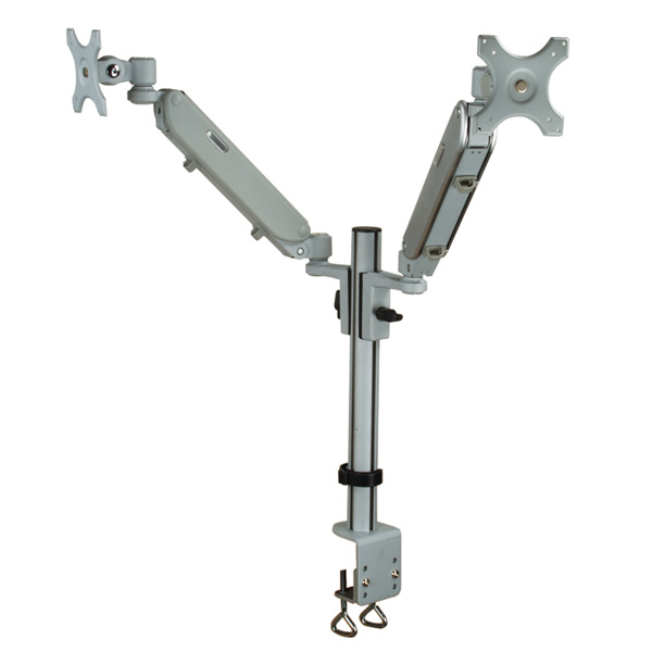 The Dual LCD Arm makes your workstation more efficient and you gain more workspace.<br /><ul><li>Designed for two monitors</li><li>The two aluminium arms are easy to adjust for swinging into any position</li><li>Each display can be tilted to any angle you need</li><li><b>The height of the LCD monitors is for both monitors separately adjustable</b></li><li>Load capacity: up to 5 kg each monitor</li><li>Meets VESA 75 (75 x 75 mm) or VESA 100 (100 x 100 mm)</li><li>Arm length: up to 2x 350 mm</li><li>With a C-clamp for desk mount</li></ul>.