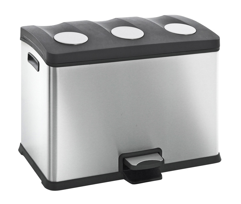 Well-Designed-Recycling. Our Rejoice recycling pedalbins are made for perfect functionality in a beautiful shape. The best value-for-money solution for every area. Made from Fingerprint-proof stainless steel and plastic. These bins come with soft closing lids, plastic inner liners with tuck-away bag hiding system and non-skid rubber feet.