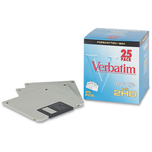 Verbatim floppy diskettes are a great way to store, share and transport data. Each diskette holds 1.44MBs of formatted data. Diskettes are perfect for storing everything from corporate data files to business presentations. Each box comes with labels for organizing your diskettes. As with all Verbatim products, these diskettes are backed by a Limited Lifetime Warranty.