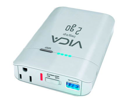 Vica ENERGY 2GO. Colour of product: White, Charger compatibility: Universal. Battery capacity: 12000 mAh, Charging source: AC, DC, USB, Battery voltage: 120 V. Depth: 130 mm, Height: 26 mm, Weight: 408 g