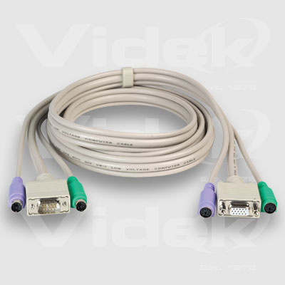 The 3 cable plug to socket extension sets feature a high quality coax monitor extension cable as well as two mini 6 pin DIN cables which are designed for PS2 mouse and keyboard interfaces.