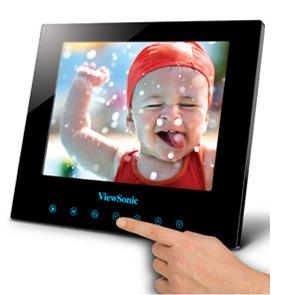 ViewSonic's SwifTouch™ digital photo frame features hidden control buttons that illuminate when touched and let you easily select photos, slideshow, movies or music. The high resolution screen displays your photos in beautiful color and vivid details. Up to 2GB of internal memory provides ample photo, video, music storage. The clock, alarm and calendar make this an excellent living room, bedroom, office or den accessory that can keep you on schedule. Keep photos and movies of your loved ones close with SwifTouch™ Digital Photo Frame. Give it as a gift or treat yourself to this stylish, high-glossphoto frame.