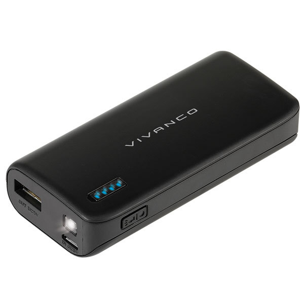 Vivanco PB 4000. Colour of product: Black, Charger compatibility: Digital camera, MP3, Mobile phone, Notebook, Smartphone. Battery capacity: 4000 mAh, Charging source: USB, Power protection features: Overdischarge. USB input port type: Micro-USB. Width: 9 mm, Depth: 2.1 mm, Height: 4.4 mm. Cables included: Micro-USB