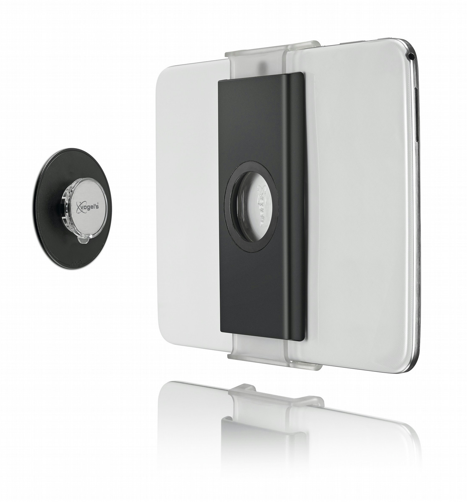 The stylishly designed Vogel’s tablet holder fits all tablets from 7-12 inches (15-22 cm) that are 0.2-0.5 inches (0.5-1.3 cm) thick. It features Vogel’s RingO mounting technology, which can be easily clicked on to the tablet mount.