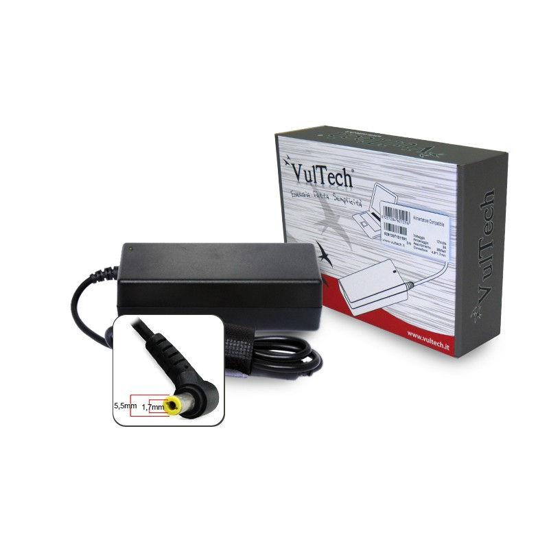 Vultech AC19342A-312. Output power: 60 W, Output voltage: 19 V, Output current: 3.42 A. Power supply type: Indoor, Purpose: Notebook, Power protection features: Over voltage, Overload, Short circuit. Colour of product: Black