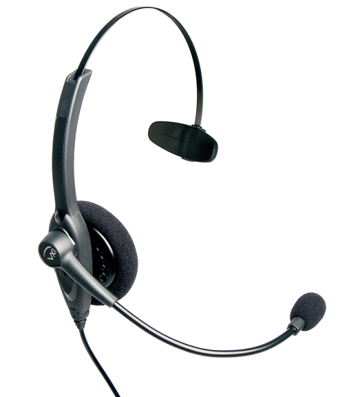 The VXi Passport 10 monaural single-wire headset keeps one ear free to hear other conversations.