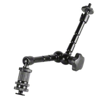 Dynamite comes in small packages: The walimex Joint Arm is a multi-functional, flexible help, which should not lack in your studio. The 28cm long Arm has three joints, two of them are equipped with high-quality ball joints. Therewith you can realize individual adjustments and positions. Especially convenient is the central fixing wheel in the center of the Joint Arm, with which you can adjust all three joints due to your requirements at one go. Concerning you connection possibilities you are also very flexible: Available is a 1/4 inch camera connection as well as a 1/4 inch tripod connection through a flash shoe.
