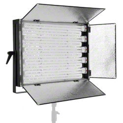 The 10 lamps (à 55W) of the walimex Fluorescent Light of 550W can be switched on and off in pairs, depending on the situation. The 4 barn doors provide a huge projection surface and shadow-free distribution. In comparison to fluorescent lights with reflecting mirrors, this Fluorescent Light is much more compact in size, making it easier to pack and transport. The daylight lamp is especially comfortable to use due to the stable bracket tripod mount allowing you to tilt the Fluorescent Light easily. Furthermore, it is possible to use lamps with other color temperatures. This plus in flexibility provides a lot of fun in your photo studio!
