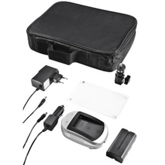 The LED light with its high quality plastic casing is ideal for mobile use as it is very lightweight. It can be powered with a battery or with the power cord directly. This is ideal when recording for longer periods of time, and it is also fully useable when the battery is dead or you forgot to bring the charger. For charging the battery, a charger is included, as well as a 12V car cable which allows you to charge the battery via the cigarette lighter in your car. For protecting your equipment, a padded transport bag is included.