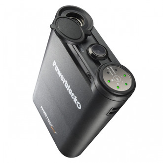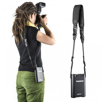 The Powerblock plus impresses with its flexibility: it can be used with flashes of various manufacturers by simply swapping the connecting cable. The absolutely sophisticated design can be seen in the details as well: With help of the clear recharge and battery status display, you are always informed about the current state of the device. It can be recharged with the included mains battery charger or 12V car cable. The attached belt clip and the carrying strap support your mobility.