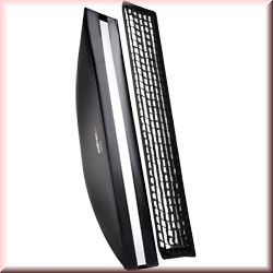 For precisely directing the light, a grid with a depth of 3cm can be fastened to the Velcro running around the edges of the softbox. Also included is a mask which is ideal to create a striplight effect.