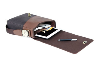 Strandgold - a real find! This bag is 100% Waterkant: genuine leather and canvas from 100 percent cotton dress this luxurious messenger bag, which is far more than just a computer bag. Lovingly designed details glamourize this shoulder bag. An inner padded compartment beds the iPad snug and safe and the intelligent placed zipper bag bears plenty of room for all sorts of accessories. Further pockets offer storage for your iPhone and other gadgets. A generous compartment allows you to tuck away even more belongings. An additional zipper pocket is placed on the back of the bag - thus this bag makes it possible to organize yourself perfectly.