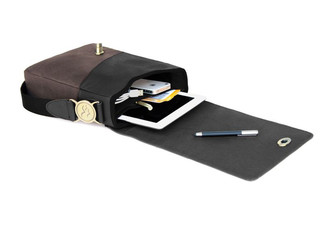 Strandgold - a real find! This bag is 100% Waterkant: genuine leather and canvas from 100 percent cotton dress this luxurious messenger bag, which is far more than just a computer bag. Lovingly designed details glamourize this shoulder bag. An inner padded compartment beds the iPad snug and safe and the intelligent placed zipper bag bears plenty of room for all sorts of accessories. Further pockets offer storage for your iPhone and other gadgets. A generous compartment allows you to tuck away even more belongings. An additional zipper pocket is placed on the back of the bag - thus this bag makes it possible to organize yourself perfectly.