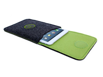 Deichkoenig wool felt sleeve for iPad Mini in grey/green