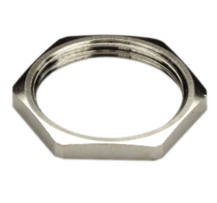 Weidmüller 1694090000. Product type: Lock nut, Material: Brass, Nickel, Thread diameter: 2.1 cm. Width: 3 mm, Weight: 2.3 g. Quantity per pack: 100 pc(s)