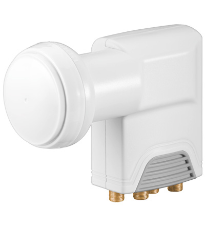 Wentronic SAT goobay Universal Quattro 0.1dB. RF connector type: F. Colour of product: White. Package dimensions (WxDxH): 108 x 65 x 138 mm