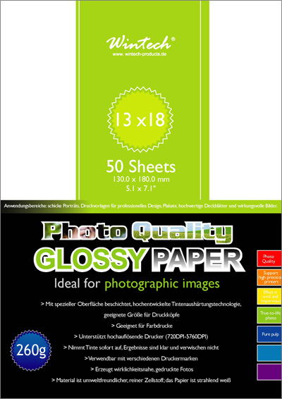 Photo Paper Glossy 260g - 10 x 15cm especially suited for portraits, manuscripts, high quality manuscripts, lifelike high quality prints.