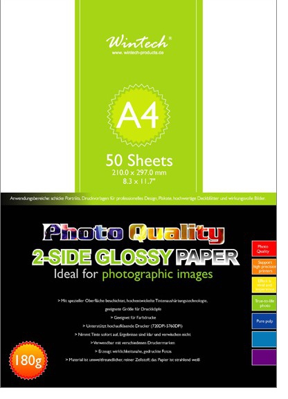 Photo Paper Glossy 180g - A4 2-seitig, especially suited for portraits, manuscripts, high quality manuscripts, lifelike high quality prints.